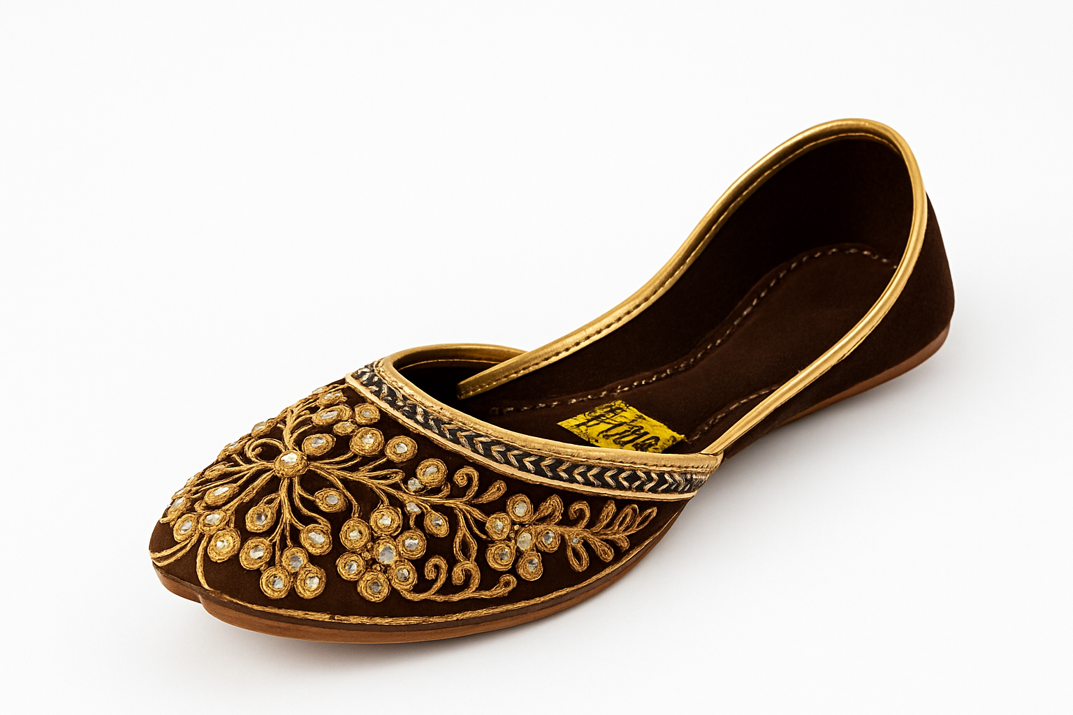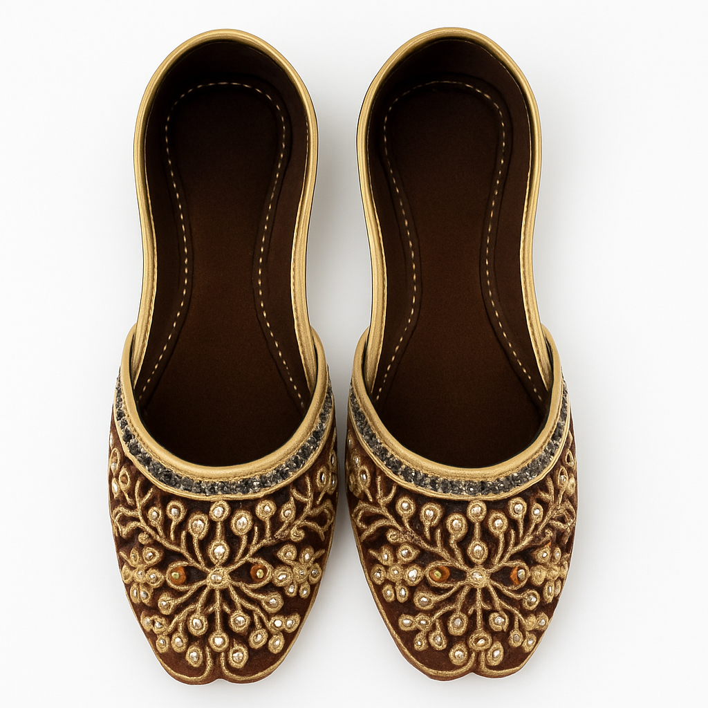 Experience the rich tradition of craftsmanship with these shoes, designed exclusively for women. These handcrafted shoes blend timeless style with comfort, making them ideal for both casual and festive occasions. The natural brown hue enhances versatility, while the soft sole ensures ease of wear throughout the day. Perfectly suited for those seeking authentic cultural footwear with a refined finish.